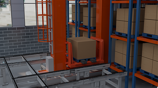 堆垛机,这在立体仓库是属于核心部件,可以进行货物的自动化储存、拣选、搬运等工作,具有三个自由度(X、Y、Z轴),可以进行水平运动、垂直运动和货叉伸缩运动。在存货时,堆垛机从出入库月台中取走货物并精准存放在库位上;取货时,堆垛机将货物从库位中取出并放置到出入库月台,最后再由AGV将货物运送至指定的分拣场所。这种立体仓库可以实现基本的“存/取”货物功能,并且具有较高的自动化程度和货物处理速度。